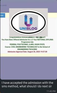 ADMISSION NEWS FEDERAL POLYTECHNIC ILARO BEGINS UPLOADING OF NAMES ON JAMB CAPS DEMPSY August 27, 2025 FEDERAL POLYTECHNIC ILARO BEGINS UPLOADING OF NAMES ON JAMB CAPS Tags: FEDERAL POLYTECHNIC ILARO Continue Reading Previous: JUST IN BUK REOPENS 2025/2026 APPLICATION PORTAL, ANNOUNCES NEW DEADLINENext: JUST IN : FEDERAL UNIVERSITY OF MEDICINE AND MEDICAL SCIENCES, ABEOKUTA (FUMMSA) EXTEND ITS FORM DEADLINE Leave a Reply Cancel replyYour email address will not be published. Required fields are marked *Comment * Name * Email * Website Save my name, email, and website in this browser for the next time I comment. Related Stories ADMISSION NEWS LASU LASU RELEASES DIPLOMA ADMISSION LIST ON SCHOOL PORTAL FOR 2025/2026 ACADEMIC SESSION DEMPSY December 7, 2025 ADMISSION NEWS JUST IN: LAGOS STATE UNIVERSITY, OJO (LASU) RELEASES SANDWICH DEGREE ADMISSION LIST FOR THE 2025 MODULAR YEAR DEMPSY December 5, 2025 ADMISSION NEWS LASU LAGOS STATE UNIVERSITY (LASU) SCHOOL OF PART TIME STUDIES (SPTS) RELEASES ADMISSION LIST ON SCHOOL PORTAL FOR THE 2025/2026 ACADEMIC SESSION DEMPSY December 3, 2025