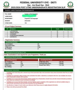 FEDERAL UNIVERSITY OYE EKITI RELEASES SCREENING RESULTS