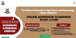 FEDERAL UNIVERSITY OF AGRICULTURE AND TECHNOLOGY, OKEHO, OYO STATE (FUNATO) SET TO BEGIN POST-UTME SCREENING REGISTRATION FOR THE 2025/2026 ACADEMIC SESSION.