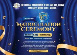 The Management of the Federal Polytechnic of Oil and Gas (FPOG), Bonny, acting through the Office of the Registrar, Mr. Pepple Adonye Emmanuel, and with the full endorsement of the Rector, Polytechnic Academic Board, and Governing Council, has formally ratified and proudly announced the schedule for the institution’s landmark 5th Matriculation Ceremony. This pivotal event, meticulously scheduled for Friday, 27th March 2026, at 9:00 AM prompt, transcends ordinary tradition: it constitutes the solemn and statutory “Academic Gateway” through which a fresh cohort of talented young Nigerians officially enters the elite cadre of technical professionals destined to shape the future of Nigeria’s energy sector and contribute to global oil and gas excellence.