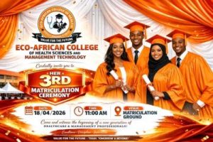 The Management of Eco-African College of Health Sciences and Management Technology cordially invites the general public, parents, guardians, distinguished guests, and well-wishers to the 3rd Matriculation Ceremony of the institution.